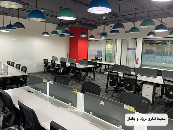 برای اینکه هم تعامل حفظ شود و هم تمرکز افراد به هم نخورد، استفاده از جداکننده های نیمه باز یا شفاف مثل پارتیشن های شیشهای یا کتابخانه های بدون پشت زمینه یک روش عالی است. این نوع تفکیک به حفظ حریم شخصی کمک میکند، اما همچنان حس مشارکت و باز بودن فضا را از بین نمیبرد. طراحی باید به گونهای باشد که افراد حس نکنند در یک “جعبه” گیر افتادهاند.